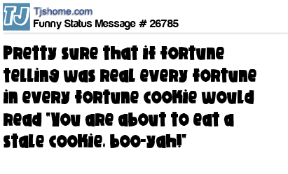 X is pretty sure that if fortune telling was real every fortune in every fortune cookie would read "You are about to eat a stale cookie, boo-yah!"