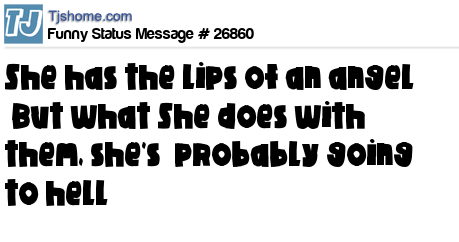 X is She has the lips of an angel  But what She does with them, she's  probably going to hell