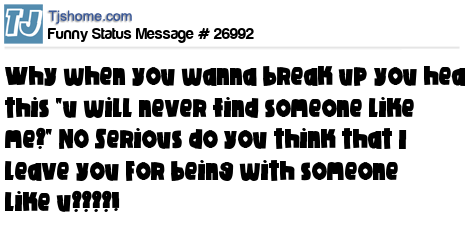 X says Why when you wanna break up you hear this "u will never find someone like me?" NO Serious do you think that I leave you For being with someone like u????!