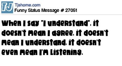 X  When I say "I understand", it doesn't mean I agree, it doesn't mean I understand, it doesn't even mean I'm listening.