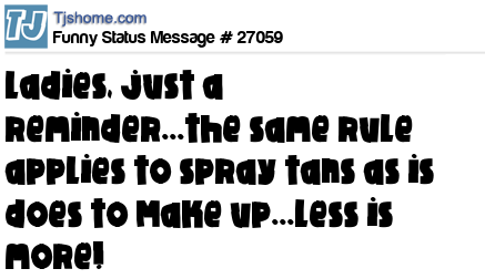 X is Ladies, just a reminder...the same rule applies to spray tans as is does to Make up...less is more!
