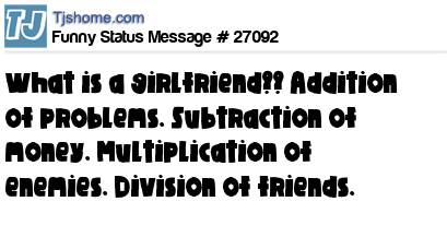 X What is a girlfriend?? Addition of problems. Subtraction of money. Multiplication of enemies. Division of friends.
