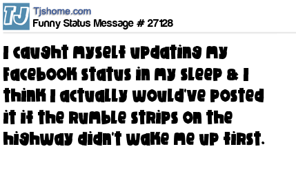 X I caught myself updating my Facebook status in my sleep & I think I actually would've posted it if the rumble strips on the highway didn't wake me up first.