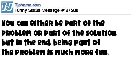 X You can either be part of the problem or part of the solution, but in the end, being part of the problem is much more fun.