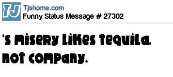 - # 106822 Misery loves company. But only if the company is good looking. And brings booze.