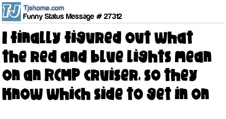 X says I finally figured out what the red and blue lights mean on an RCMP cruiser, so they know which side to get in on