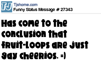 X is Has come to the conclusion that fruit-loops are just gay cheerios. =)
