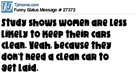 X Study shows women are less likely to keep their cars clean. Yeah, because they don't need a clean car to get laid.