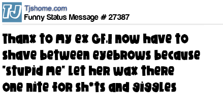 X is thanx to my ex GF,I now have to shave between eyebrows because "stupid me" let her wax there one nite for sh*ts and giggles