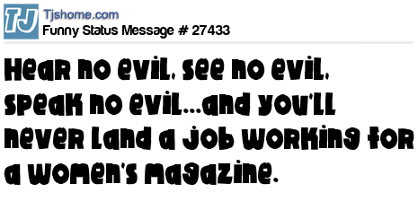 X Hear no evil, see no evil, speak no evil...and you'll never land a job working for a women's magazine.