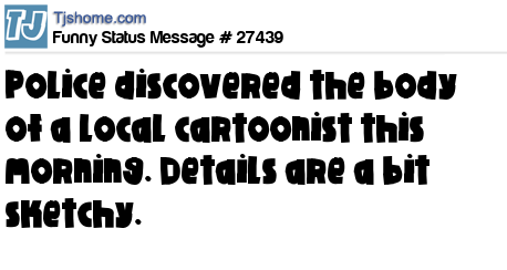X Police discovered the body of a local cartoonist this morning. Details are a bit sketchy.
