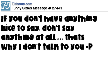 X If you don't have anything nice to say, don't say anything at all.... thats why I don't talk to you =P