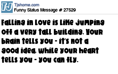 - # 153991 X says Falling in love is like jumping off a very tall building. Your brain tells you - it's not damn a good idea, while your heart tells you - you can fly.