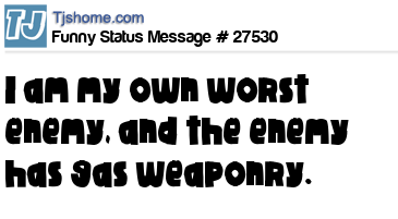 - # 27554 I am my own worst enemy, and the enemy has really bad gas weaponry.