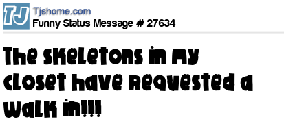 - # 139439 It:always Halloween at your house with all those skeletons in your closet.