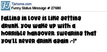 X says Falling in love is like getting drunk. you wake up with a horrible hangover, swearing that you'll never drink again ;-)*