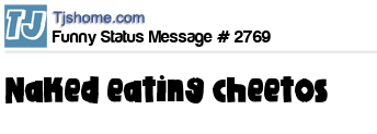- # 105850 There is nothing like sitting naked in a beanbag chair eating Cheetos. I hope they let me back in Walmart.
