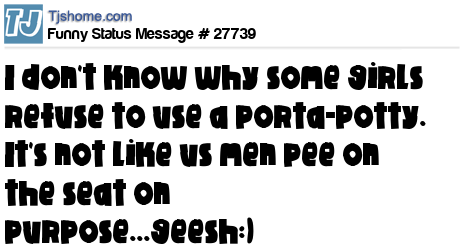 X I don't know why some girls refuse to use a porta-potty. It's not like us men pee on the seat on purpose...geesh:)