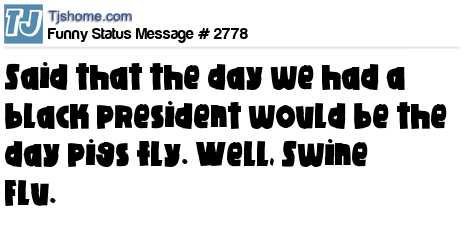 X said that the day we had a black president would be the day pigs fly. Well, Swine Flu.