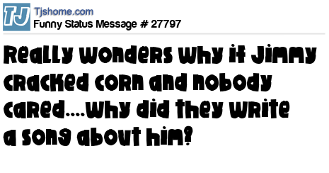 - # 74551 If jimmy cracked corn and no one cares, WHY THE HELL IS EVERYONE SINGING ABOUT IT!!..