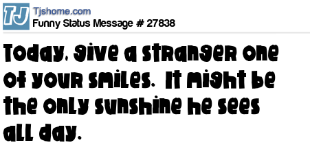 X Today, give a stranger one of your smiles. It might be the only sunshine he sees all day.