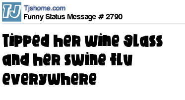 - # 8499 just got his swine flu shot. It's made with real bits of swine, so you know it's good.