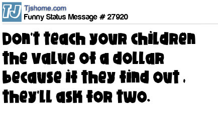 X Don't teach your children the value of a dollar because if they find out , they'll ask for two.