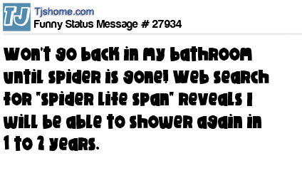 X Won't go back in my bathroom until spider is gone! Web search for "spider life span" reveals I will be able to shower again in 1 to 2 years.