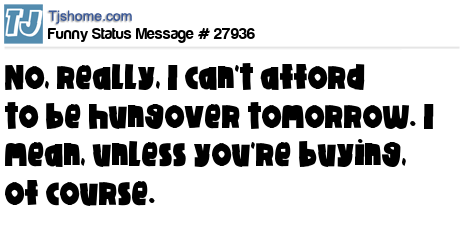 X No, really, I can't afford to be hungover tomorrow. I mean, unless you're buying, of course.