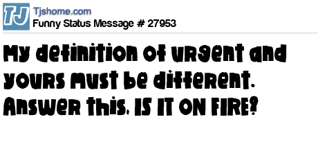 X My definition of urgent and yours must be different. Answer this, IS IT ON FIRE?