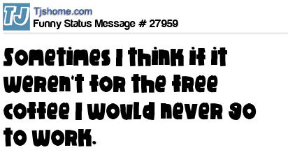 X Sometimes I think if it weren't for the free coffee I would never go to work.