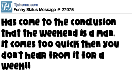 X is Has come to the conclusion that the weekend is a man, it comes too quick then you don't hear from it for a week!!