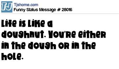 X Life is like a doughnut. You're either in the dough or in the hole.