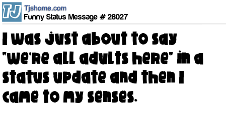 X I was just about to say "we're all adults here" in a status update and then I came to my senses.