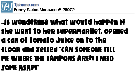 X ..is wondering what would happen if she went to her supermarket, opened a can of tomato juice on to the floor and yelled "CAN SOMEONE TELL ME WHERE THE TAMPONS ARE?! I NEED SOME ASAP!"