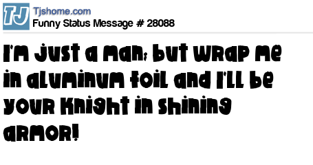- # 27615 I can't be your knight in shining armor.....but I DO have aluminum foil!