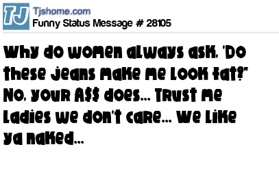 X Why do women always ask, 'Do these jeans make me look fat?" No, your A$$ does... Trust me ladies we don't care... We like ya naked...