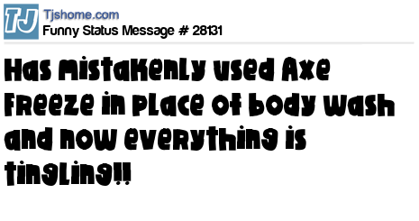X is has mistakenly used Axe Freeze in place of body wash and now everything is tingling!!