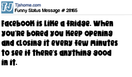 - # 23554 believes that Facebook is a lot like a refridgerator. when you're bored you keep opening and closing it every couple of minutes to see if there's anything good in it!!!!!