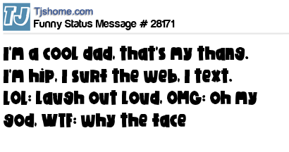 - # 57277 s a cool dad, that's my thang. I'm hip, I surf the web, I text. LOL: laugh out loud, OMG: oh my god, WTF: why the face