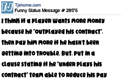 X I think if a player wants more money because he "outplayed his contract", then pay him more if he hasn't been getting into trouble. But, put in a clause stating if he "under plays his contract" team able to reduce his pay accordingly. Injuries aside.