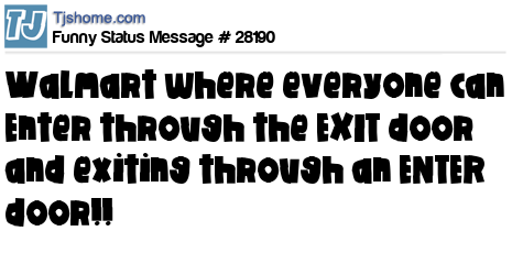 - # 28191 Love Walmart where everyone can Enter through the EXIT door and exit through an ENTER door!! What are we all on DRUGS??