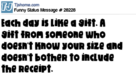 X Each day is like a gift. A gift from someone who doesn't know your size and doesn't bother to include the receipt.
