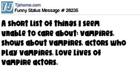 X A short list of things I seem unable to care about: vampires, shows about vampires, actors who play vampires, love lives of vampire actors.