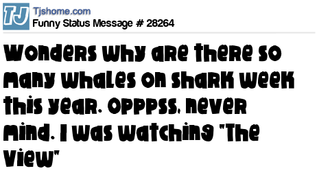 X says Wonders why are there so many whales on shark week this year. Opppss, never mind. I was watching "The View"