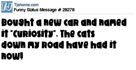 X has bought a new car and named it "Curiosity". The cats down my road have had it now!