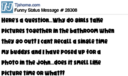 X Here's a question...Why do girls take pictures together in the bathroom when they go out? I cant recall a single time my buddys and I have posed up for a photo in the john...does it smell like picture time or what??