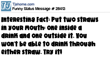 X Interesting Fact: Put two straws in your mouth: one inside a drink and one outside it. You won't be able to drink through either straw. Try it!