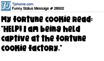 X My fortune cookie read: "HELP! I am being held captive at the fortune cookie factory."