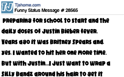X is preparing for school to start and the daily doses of Justin Bieber fever. Years ago it was Britney Spears and, yes, I wanted to hit her one more time. But with Justin...I just want to wrap a Silly Bandz around his hair to get it out of his eyes!